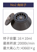 No2 | 角轉(zhuǎn)子 | 16x10 ml | 20000 r/min | 43660xg |
