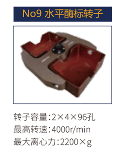 No9 | 水平酶標(biāo)轉(zhuǎn)子 | 2x4x96孔 | 4000 r/min | 2200xg |